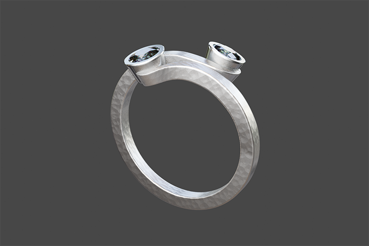This ring was inspired from nature. Cristal clear dew drops on grass. With the help of Bijoux Stadelmann AG (Bern, Switzerland), and their brilliant crafts(wo)men, in spring 2016 I brought this holistic design to life. Two diamonds (a bit less than a carat each) on white gold. This is the only piece. Contact me if you have someone special in mind to gift it to.