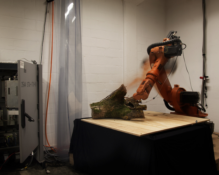 November 28th 2016: It's a lovely perpetual winter evening in Basel. Kuka the industrial robot is working on a task set to it through Cura and Processing. Trump is the president-elect of America and everyone is talking about “grabbing her by the pussy”. All of a sudden even Kuka is self-learning in a gender signified industrial surrounding. Kuka is no more “It”! Kuka has been eclipsed by Tr(i)ump(hant) developments and turned to “he”! To the point that at work he resolves to sexually harass his huwoman co-worker, and starts dreaming about her. Kuka is that creepy co-worker in “love”.